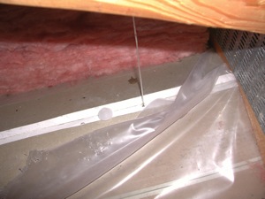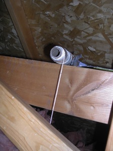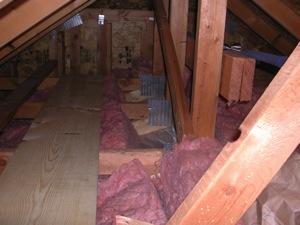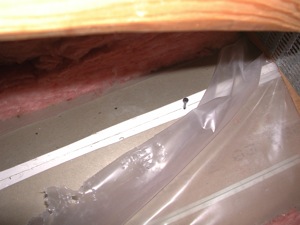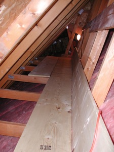 Otherwise, my feet would crash through the fiberglass-covered sheetrock nailed in from below, a rather unnerving prospect given that only the sheetrock lay between a misstep off of a stud and a 25 foot drop to the unseen floor below.