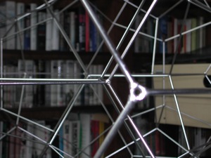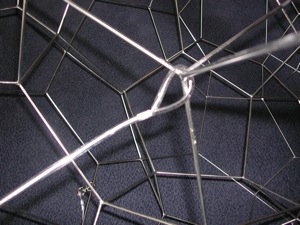 The sculpture has one vertex that has a nut with screw threads welded into it, for hanging purposes.